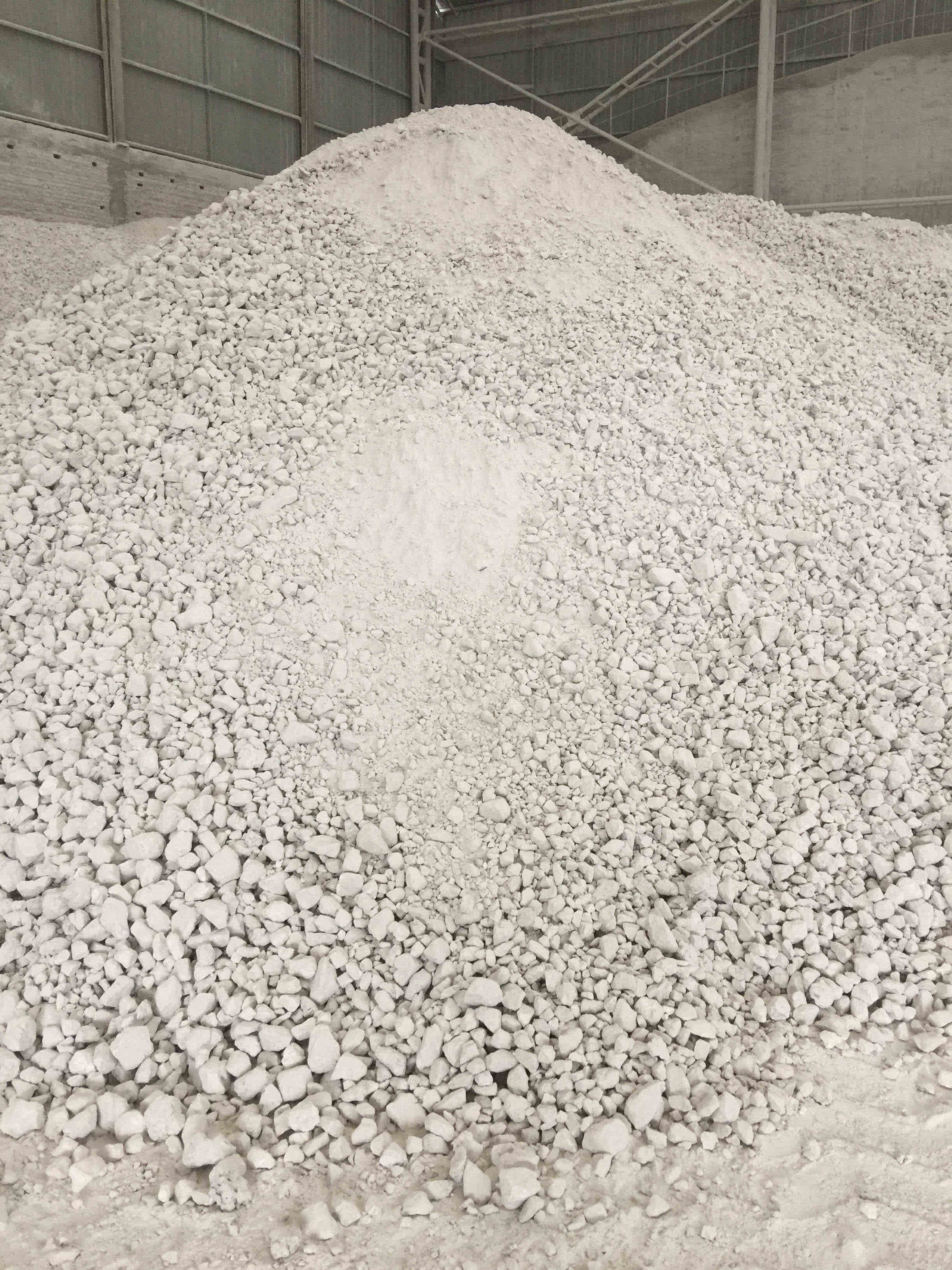出窯石灰經(jīng)過(guò)篩選,小于3mm的粉料進(jìn)入高壓石灰粉壓球機(jī)壓球,球塊規(guī)格為35mm*25mm*15mm(長(zhǎng)*寬*厚),也可按照需方要求定制,獲得球塊體積密度1.9-2.2g/cm3,墜落強(qiáng)度和塊狀石灰相當(dāng)。壓球后經(jīng)過(guò)篩選,合格球塊進(jìn)入成品倉(cāng)供冶煉使用。不合格球塊由皮帶機(jī)輸送至粉料倉(cāng),重新進(jìn)入壓球流程。